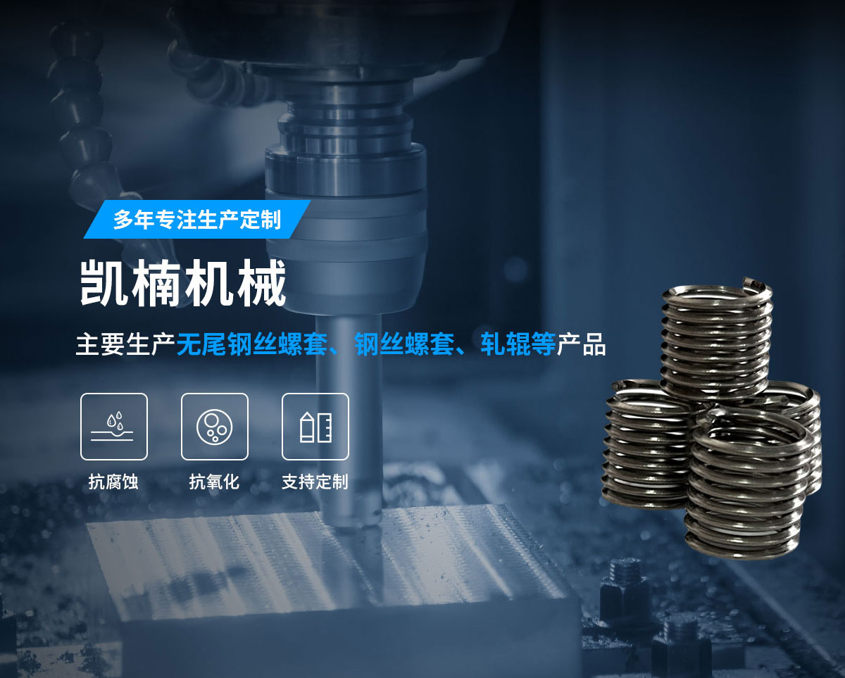 河南凱楠機械有限公司是一家集研發、生產、銷售和服務于一體的螺套生產廠家。主要生產無尾鋼絲螺套、鋼絲螺套、軋輥等產品。 公司至今已竣工并投入生產,占地面積達8000m2,廠房面積近3000m2。目前,本公司與多家實力公司合作,在質量上獲得了客戶的一致認可和好評。